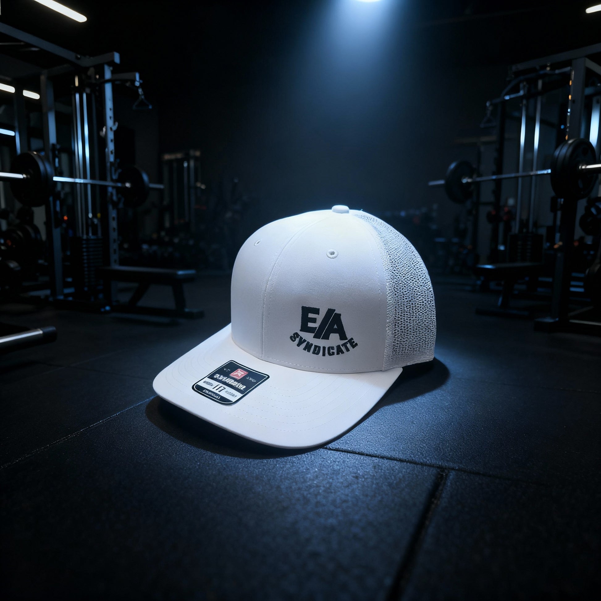 Branded EA Syndicate logo hat on a Richardson 112 Snap Back. This white with black logo is one of the hottest selling hats out. Comfortable fit for the gym or any setting.